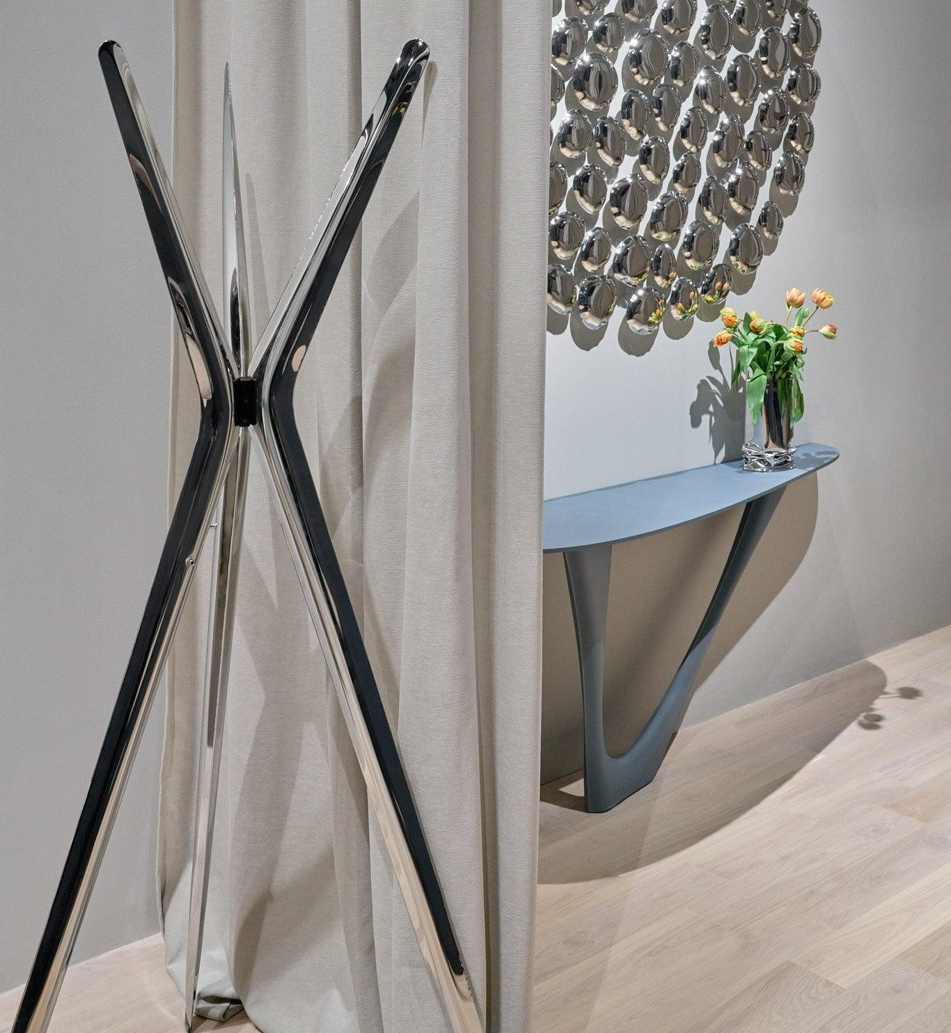 Wieszak Snopek marki Zieta to wyjątkowe połączenie funkcjonalnego designu i nowoczesnej rzeźby użytkowej. Ten trójnożny wieszak podłogowy zachwyca strzelistą, lekką formą, która w subtelny sposób wzbogaca przestrzeń, nie dominując wnętrza. Wyraziste krzywizny, płynne linie i charakterystyczne refleksy powierzchni sprawiają, że Snopek przyciąga wzrok zarówno jako praktyczny wieszak na ubrania, jak i samodzielny obiekt dekoracyjny.