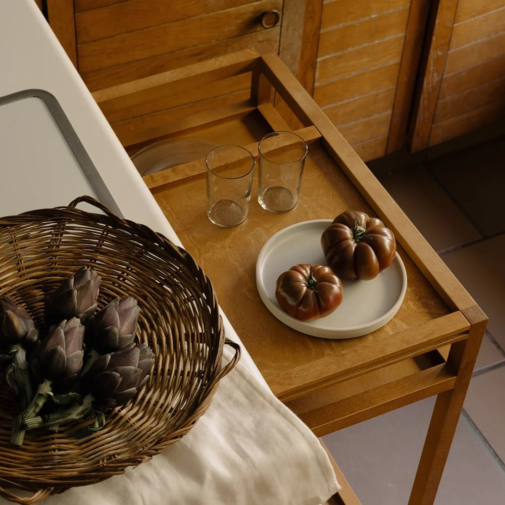 Ten wysoki, funkcjonalny wózek wyposażony jest w zdejmowaną tacę i kółka, które zapewniają pełną mobilność i wygodę użytkowania. Sprawdza się doskonale jako elegancki barek, pomocnik przy stole lub mobilna ekspozycja książek i dekoracji. Ratio Trolley łączy praktyczność z poetycką prostotą wprowadza do wnętrza ducha duńskiego designu i ponadczasową harmonię kolekcji Ratio.