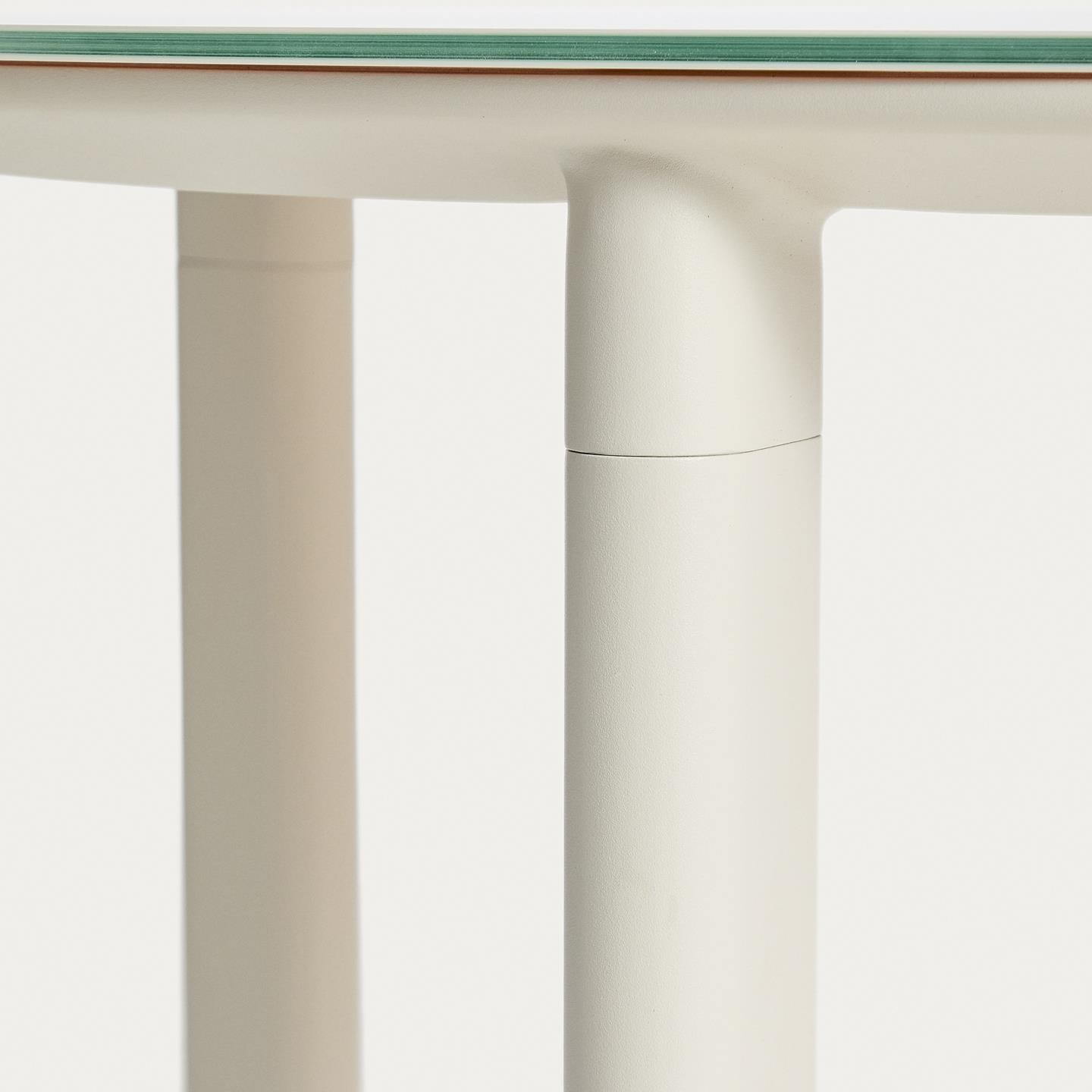 Zestaw ogrodowy Erice Kave Home to designerskie połączenie nowoczesnej formy, trwałych materiałów i wygody użytkowania. Komplet składa się z okrągłego stołu 120 cm oraz czterech krzeseł, dzięki czemu idealnie sprawdzi się podczas spotkań w ogrodzie, na tarasie lub przestronnym patio. Minimalistyczna konstrukcja z aluminium zapewnia lekkość, wysoką odporność na rdzę i korozję oraz doskonałą trwałość w warunkach zewnętrznych.