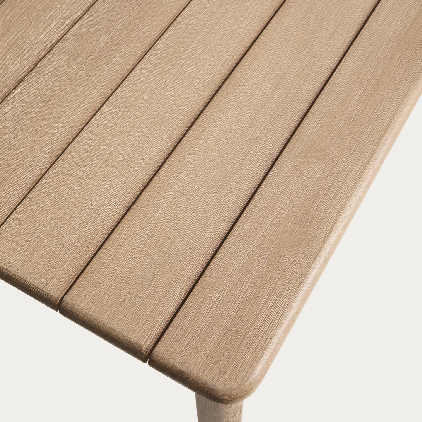 Zestaw ogrodowy Sori z katalogu hiszpańskiej marki Kave Home. Idealny do przestrzeni zewnętrznych łączący trwałość, komfort i naturalny urok drewna akacjowego. Stół i krzesła wykonano z litego drewna akacjowego z certyfikatem FSC™ 100%, pochodzącego z odpowiedzialnie zarządzanych lasów. Stół urzeka szczotkowanym wykończeniem, które podkreśla naturalną fakturę drewna, a solidne nogi gwarantują stabilność nawet w zmiennych warunkach pogodowych.