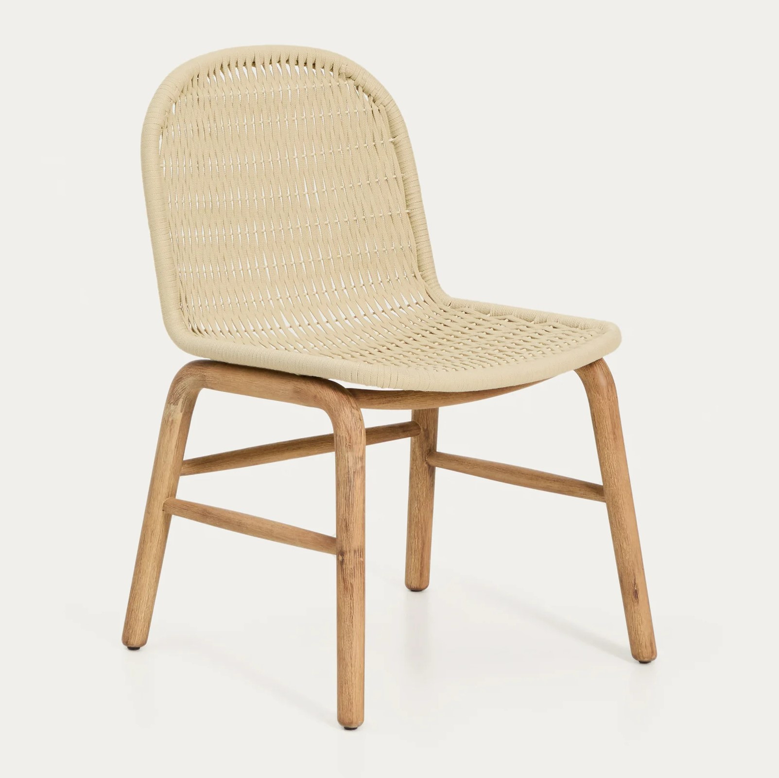 Siedziska i oparcia krzeseł są ręcznie plecione z liny odpornej na promieniowanie UV, zapewniając komfort i przyjemną teksturę przez wiele sezonów. Dzięki zastosowaniu lakieru PU drewno jest odporne na wilgoć i promieniowanie słoneczne, a regularna konserwacja środkiem Sterina pozwoli cieszyć się zestawem przez lata.