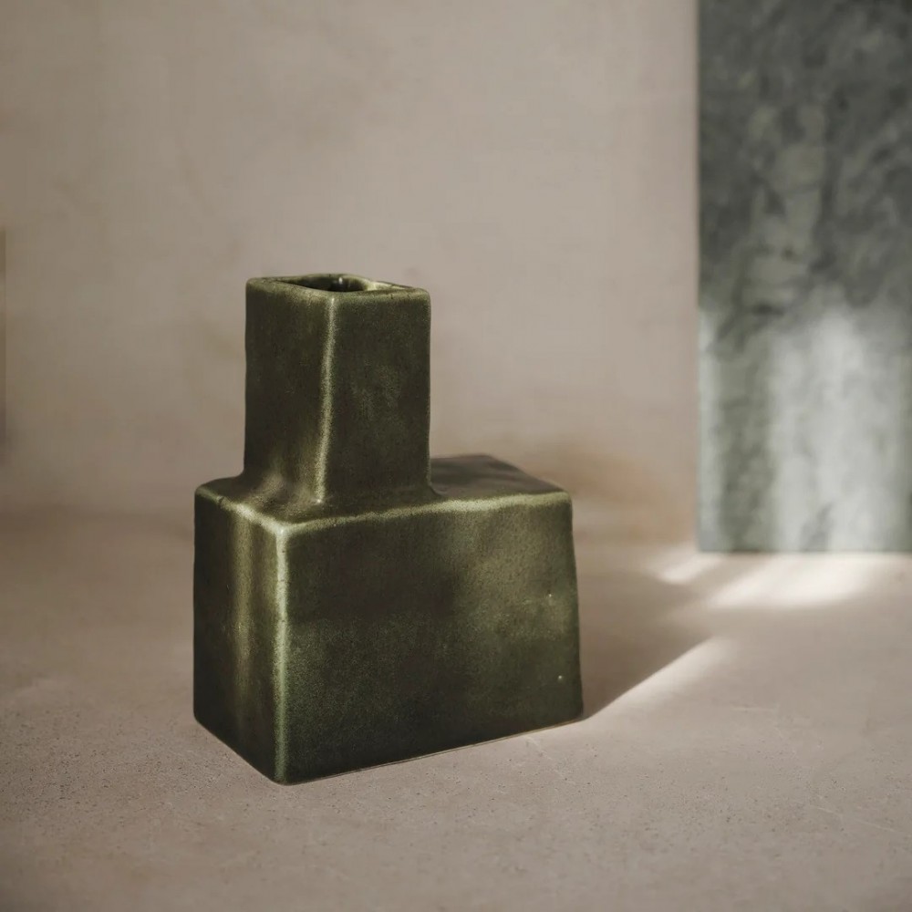 Kolekcja Koa łączy brutalistyczną estetykę z surową, ręcznie wykonaną formą. Każdy z wazonów tej wyjątkowej serii ma geometryczny kształt przywołujący piękno struktur architektonicznych, podczas gdy subtelne niedoskonałości szkliwa nadają im rzemieślniczy charakter. Wazony Koa oferowane są w różnych proporcjach i rozmiarach; od wysokich i smukłych po przysadziste i szerokie tworząc rytmiczną, przyciągającą wzrok kompozycję.