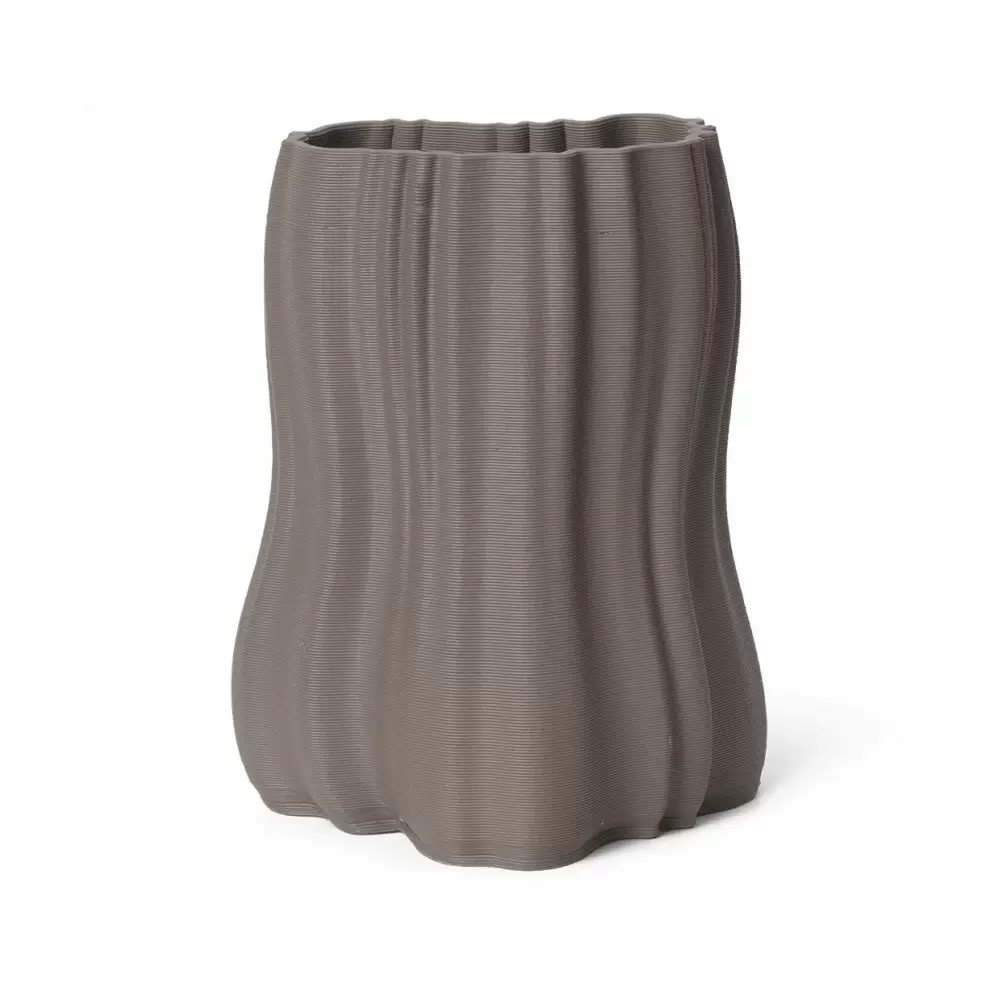 Moiré to wazon inspirowany efektem graficznym. Ten kamionkowy wazon powstał w procesie druku 3D gliny, w wyniku czego cienkie warstwy stopniowo utworzyły subtelny wzór na korpusie wazonu ujawniając jego cyfrowe pochodzenie. Użyj go aby wyeksponować swoje ulubione kwiaty lub postaw na komodzie pusty, a z pewnością będzie wyjątkową dekoracją samą w sobie!