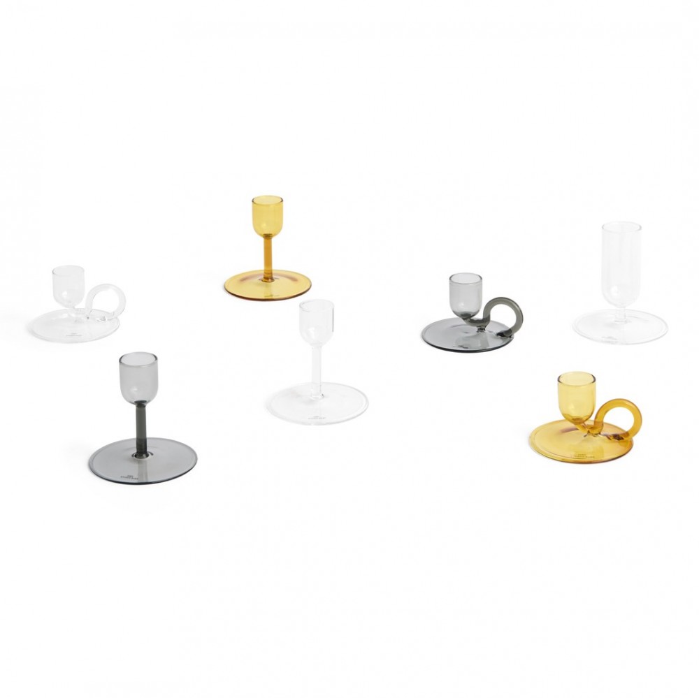 Tiny to kolekcja świeczników wykonanych ze szkła borokrzemianowego. Te designerskie akcesoria mają smukły trzonek albo uchwyt z pętelką, dzięki czemu można łatwo je przesuwać oraz szeroką podstawę, która zbiera kapiący wosk. Świeczniki Tiny występują zarówno w przezroczystym jak i kolorowym szkle przez to można używać ich samodzielnie lub stylizować z innymi wariantami tworząc tym samym nastrojowe ekspozycje na półkach, stołach lub parapetach.