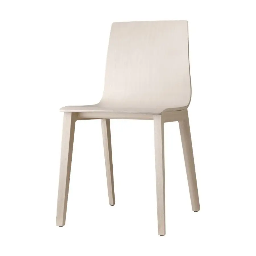 Korpus krzesła wykonany z wielowarstwowego drewna bukowego o zmiennej grubości, rama z litego buku.