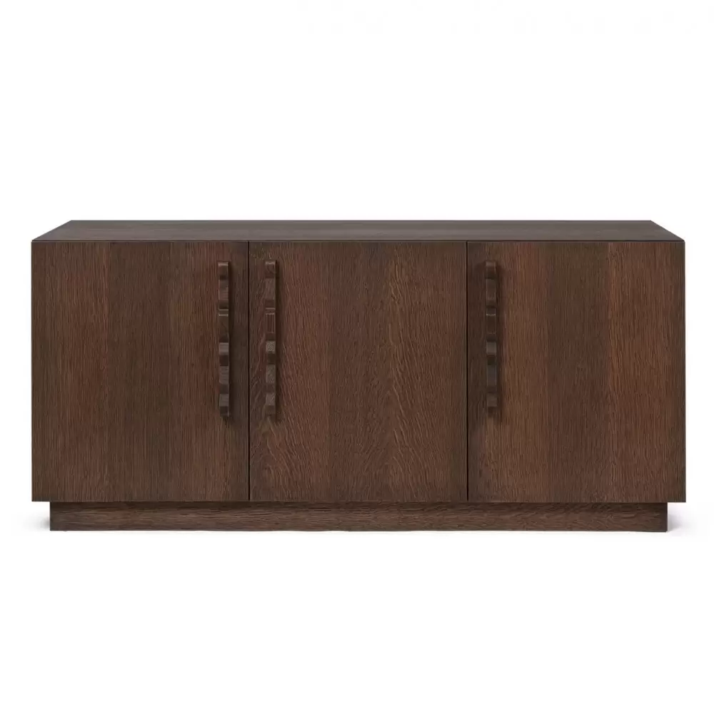Unda to luksusowy kredens wykonany z barwionego na ciemno dębu z certyfikatem FSC. Synonim solidnej, klasycznej estetyki kontrastującej z zabawnymi, falistymi uchwytami. To wzajemne oddziaływanie praktyczności i fantazji skutkuje ponadczasowym dziełem, które dopasowuje się do każdej przestrzeni użytkowej. Wewnętrzne półki kredensu Unda są modułowe, co pozwala dostosować wysokość w zależności od wymagań dotyczących przechowywania.