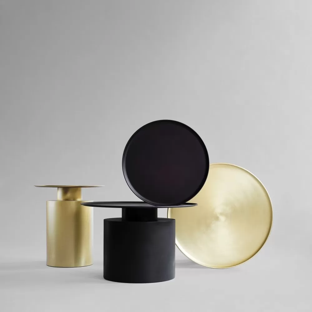 Stolik Pillar dostępny jest w wersji stolika do kawy oraz stolika bocznego jak również w dwóch kolorach; palonej czerni oraz mosiężnym wykończeniu.