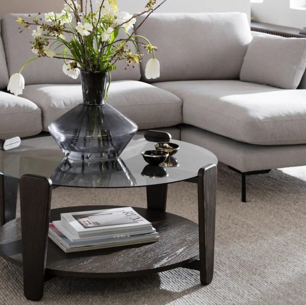Arran to stolik kawowy utrzymany w skandynawskim stylu. Szklany blat stolika spotykający się z brązowym dębem tworzy oryginalny kontrast, który emanuje elegancją natomiast okrągły kształt blatu sprawia, że stolik będzie się dobrze prezentował obok różnych sof. Stolik Arran dostępny jest w dwóch różnych rozmiarach, które można ustawić osobno lub razem jako grupę.