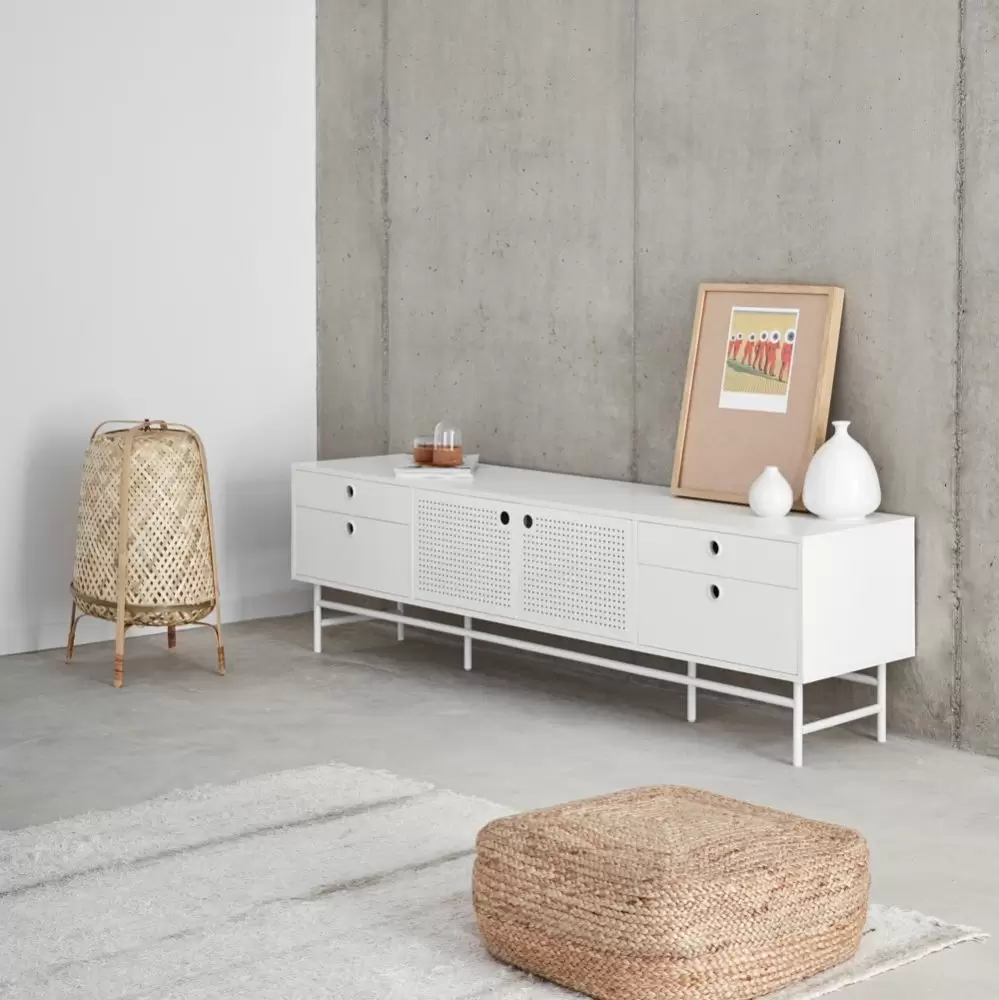 Komoda tv Punto to połączenie eleganckiego stylu i wysokiej funkcjonalności. Jej nowoczesne linie podkreślają siłę industrialnej awangardy aby dostosować się do najbardziej aktualnych przestrzeni. Perforowane, metalowe drzwi akcentują wyjątkowy charakter mebla.