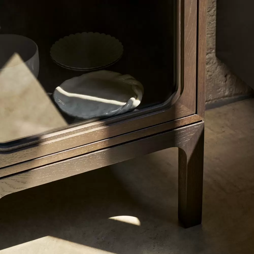 Witryna Trace łączy współczesną sylwetkę z klasycznym wyrazem, zapewniając miejsce do przechowywania w postaci minimalistycznej przeszklonej szafki z litego dębu, idealnej do eksponowania cennych przedmiotów. Studio projektowe wybrało nazwę szafki, aby odzwierciedlić koncepcję kolekcjonowania małych, sentymentalnych pamiątek – i śladów, które po sobie pozostawiają. To idealne miejsce dla Twoich wspomnień.