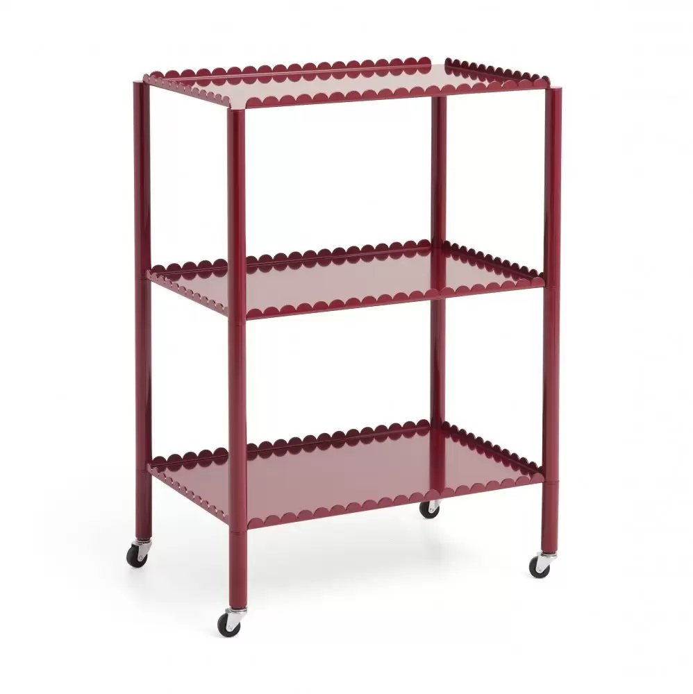 Dekoracyjny jednocześnie bardzo funkcjonalny wózek na kółkach z serii Arcs uwielbianej przez klientów, duńskiej marki HAY. Wykonany ze stali malowanej proszkowo z charakterystycznymi dla serii Arcs ozdobnymi krawędziami. Świetnie się sprawdzi nie tylko w roli wózka barowego, ale również miejsca gdzie przechowasz książki, dekoracje czy inne domowe akcesoria.