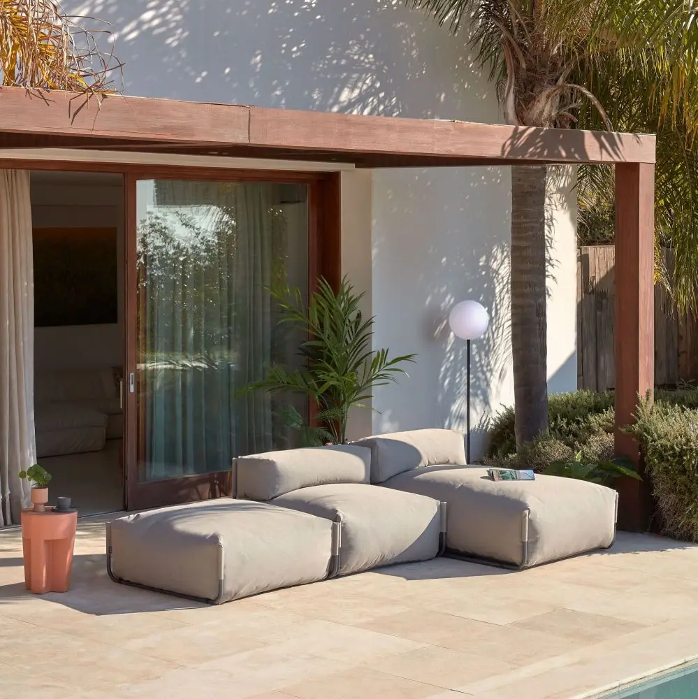 Modułowy element, który można łączyć z kolekcją Square Kave Home tworząc tym samym samodzielną pufę, sofę lub narożnik ogrodowy o dowolnej wielkości. To nowoczesne, komfortowe siedzisko nadaje się w 100% do użytku zarówno wewnątrz jak i na zewnątrz.