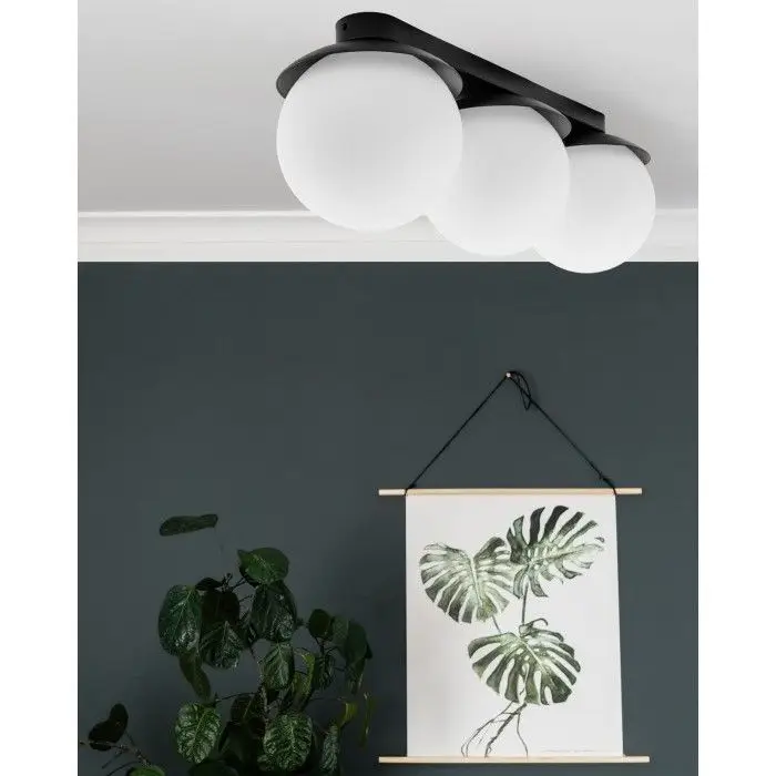 Lampa sufitowa z kolekcji Kuul polskiej marki Ummo. Trzy okrągłe, szklane klosze w kolorze białym-matowym w stalowej oprawie. W ciągu dnia lampa przypomina śnieżnobiałe kule o zmierzchu wypełnia pomieszczenie przyjemnym, naturalnym światłem.